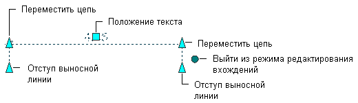 При выборе AD-размера отображаются различные ручки. Ручки можно использовать для добавления или удаления размерных точек, перемещения цепей размеров, изменения смещения выносных линий и переопределения размеров компонентов стен.
