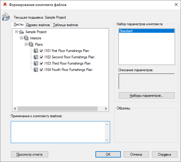- Вся подшивка проекта: при этом в комплект включаются все листы из подшивки проекта.