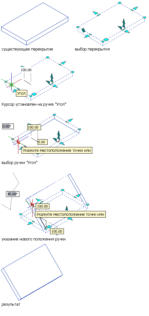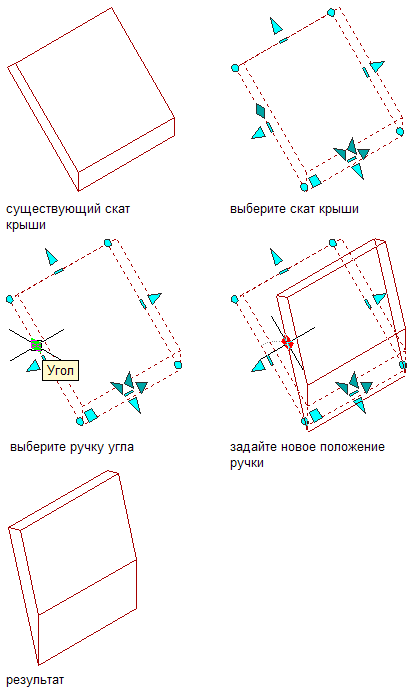 Эта процедура используется для изменения наклона перекрытия или ската крыши в 3D изометрическом виде. (Для корректировки наклона и управления автоматическим выравниванием бордюрной рейки можно также воспользоваться палитрой свойств.)