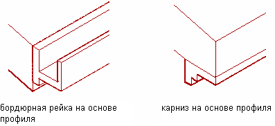 - кромки перекрытий и скатов крыши (бордюрные рейки и карнизы);