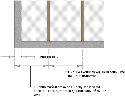 По умолчанию ячейки сетки измеряются от начальной и конечной точки базовой линии оконной/дверной сборки (горизонтальное деление) или по базовой высоте (вертикальное деление). Ширина каркаса не включается в расчет размера ячейки. Например при рисовании дверной/оконной сборки с 14-футовой базовой линией и 1-футовой коробкой слева и справа и при задании фиксированного количества вертикальных ячеек, размеры этих ячеек будут выглядеть различными. Первая и последняя ячейки будут меньше, так как они включают в себя каркас.