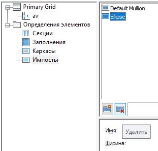 5. В левой части окна в опции "Определение элементов" выберите "Импосты".