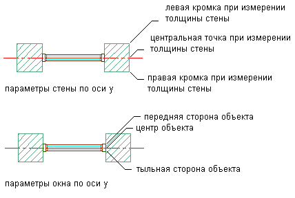 | установить опорную точку по центру стены, | выберите для параметра "От..." значение "Центральная точка при измерении толщины стены". |