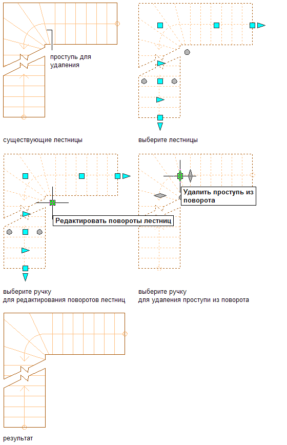 Эта процедура используется для удаления проступи из поворота забежной лестницы.