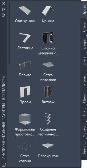 Пользовательские палитры, сформированные администратором САПР или другими пользователями, могут содержать инструменты зон со стилями и свойствами зон, отредактированными согласно требованиям определенных проектов или стандартов организации.