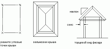Эта процедура используется для добавления наклонной крыши со свойствами, указанными в выбранном инструменте крыши. Можно создать объект вальмовой или мансардной крыши.