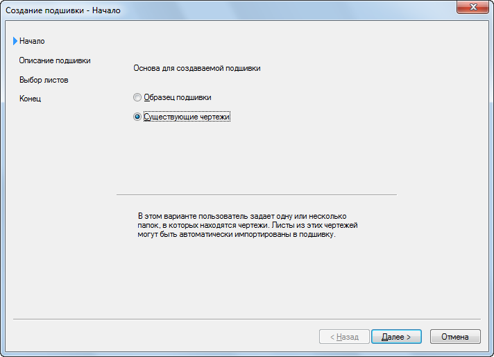 Данная процедура используется для создания шаблона подшивки, который содержит макеты, взятые из одного или нескольких имеющихся чертежей. Также можно выбрать параметры, позволяющие помещать перед заголовками листов в качестве префиксов имен файлов и создавать подгруппы листов на основе структуры папок. Примененные здесь настройки переопределяются при перенаправлении категорий высшего уровня в диалоговом окне "Свойства проекта" в проект, в котором находится подшивка.