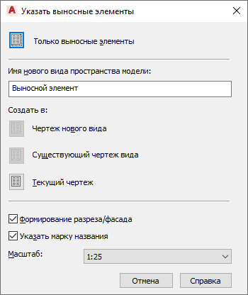 Эта процедура используется для размещения выносного элемента, с помощью которого на текущем виде чертежа создается деталь.