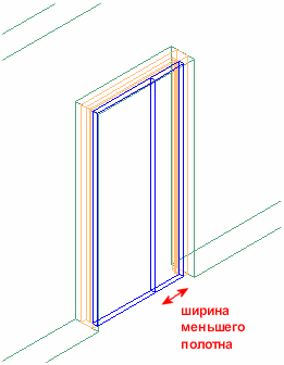 Толщина полотна Только для типов "Двупольная с полотнами разной ширины","Двупольная с качающимися полотнами разной ширины" и "Двупольная на два выхода с полотнами разной ширины" Определяет толщину дверной панели для двери типа "Двупольная с полотнами разной ширины"