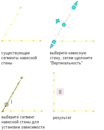 С помощью зависимости "Горизонтальность" можно выровнять сегмент стены по горизонтали.