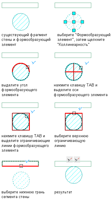 С помощью зависимости "Коллинеарность" можно выровнять кромку формообразующего элемента относительно кромки сегмента стены.