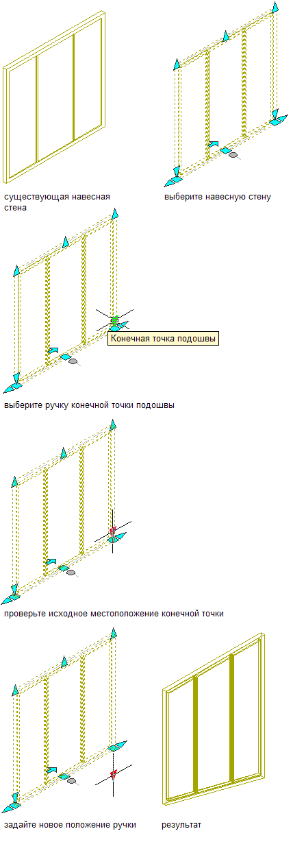 Данная процедура предназначена для того, чтобы изменить высоту или форму линии крыши и подошвы с помощью ручек.