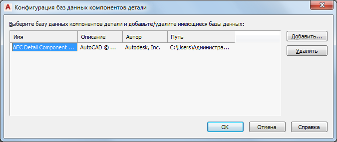Прим.: Здесь могут быть добавлены только такие базы данных компонентов деталей, которые имеют соответствующую структуру; при попытке добавить базу данных с другой структурой будет получено сообщение об ошибке.