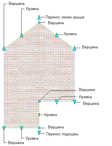 Прим.: Чтобы добавить фронтон или уступ к линии крыши или к подошве, которая была отредактирована ранее, вначале удалите существующую линию крыши или подошвы при помощи инструмента "Удалить".