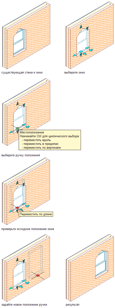 Эта процедура используется для изменения положения одного или нескольких окон вдоль стены за счет смещения окон от опорного положения.