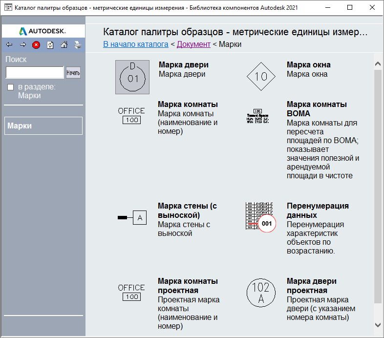 Библиотека компонентов: вид "Палитры деталей" в Каталоге палитр