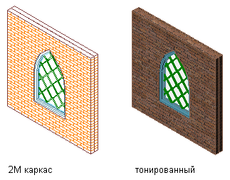 Отображение окна в виде 2D каркасной модели или с визуализированием