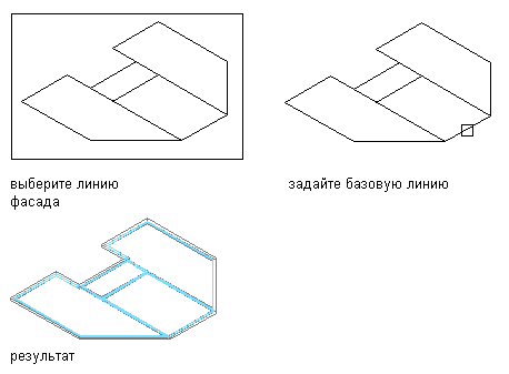 Если линии нарисованы в плоскости XY (на виде "в плане"), и используется стандартная базовая линия, то результирующая навесная стена отображается на экране в виде проекции в направление Z.