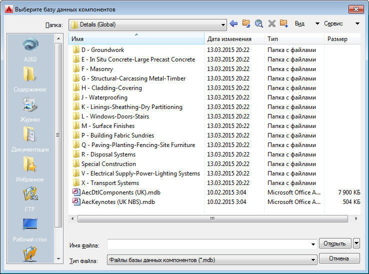 - В диалоговом окне "Выбор базы данных компонентов" выберите базу данных, которую хотите добавить, и нажмите "Открыть".