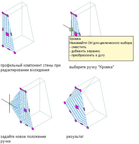 Добавление вершины к кромке контекстного редактирования профильного компонента стены