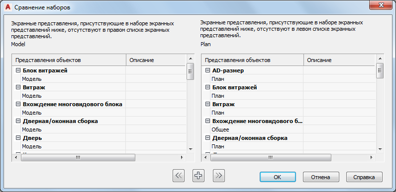 Сравнение наборов ЭП и просмотр различий в назначении экранных представлений
