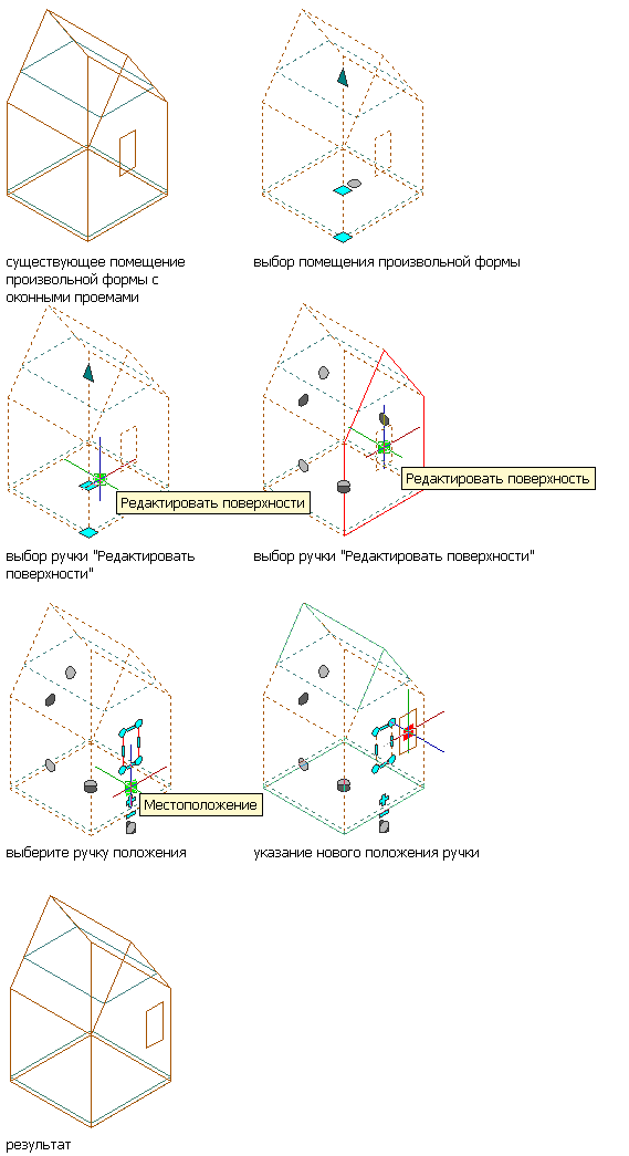 Прим.: Перемещение проема на другую поверхность или вне пространства приведет к созданию нулевой площади проема.
