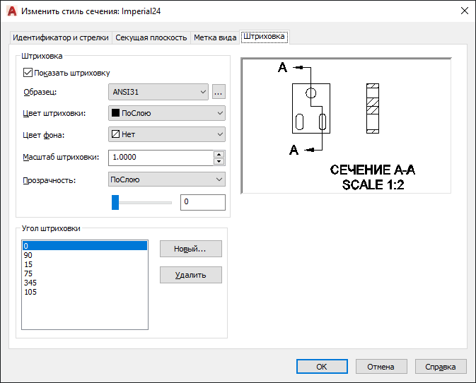 Вкладка "Штриховка" (Диспетчер стилей сечения)