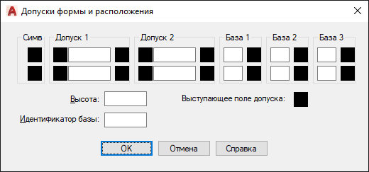 Поле для ввода буквенного обозначения базы отсчета. Базой отсчета называется элемент детали, определяющий одну из плоскостей или осей системы координат, по отношению к которой задается допуск. В качестве базы отсчета можно использовать точку, отрезок, плоскость, цилиндр или другой геометрический объект.