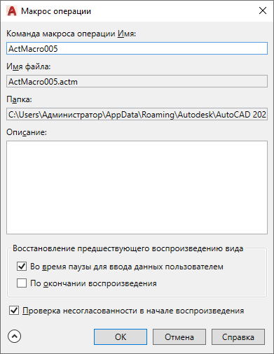 Задание имени текущего макроса операции. Можно задать новое имя вместо имени, отображаемого по умолчанию.