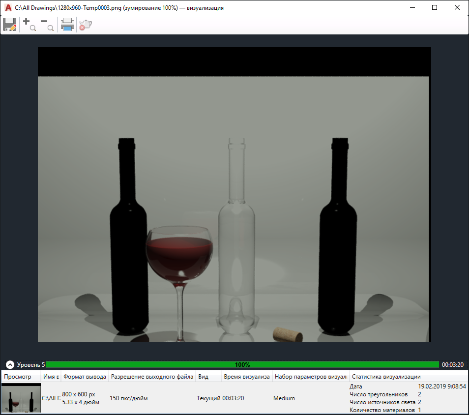 Визуализированное изображение из любого чертежа всегда появляется в соответствующем окне визуализации.