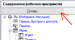 - Выберите рабочее пространство, содержащее вкладку ленты, для которой требуется изменить свойства панелей ленты.