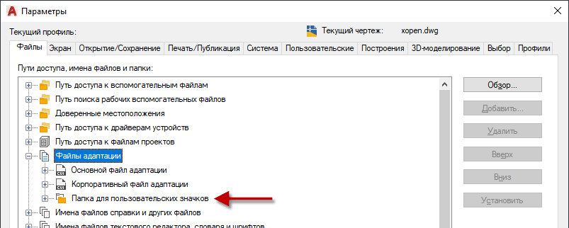 Файл acad.cuix (программы на базе AutoCAD) acadlt.cuix (AutoCAD LT) |