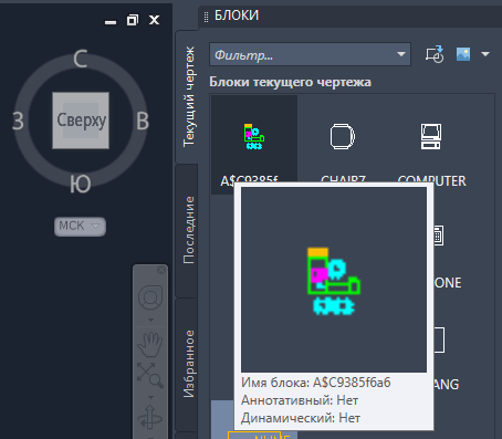 Кроме того, можно ввести в командной строке ВСТБЛОК или нажать сочетание клавиш SHIFT + CTRL + V.