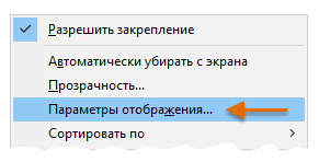 Щелкните правой кнопкой мыши в неиспользуемой области внутри палитры HYT. В меню выберите «Параметры отображения».
