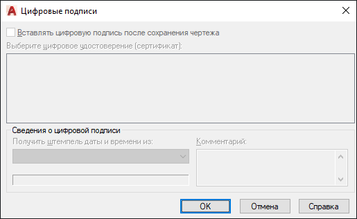 Диалоговое окно "Цифровые подписи" (команда)