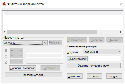 Назначение фильтров для выбора объектов, их редактирование, присвоение имен.