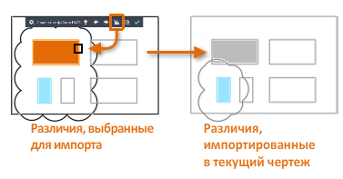 С помощью панели инструментов сравнения файлов DWG можно импортировать различия из сравниваемого чертежа в текущий. Поддерживается импорт только тех объектов сравниваемого чертежа, которые отличаются от объектов текущего чертежа. Данная команда обеспечивает эффективный способ согласования текущего чертежа с более ранней версией.