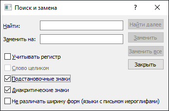 Прим.: Если в поле «Найти» указаны подстановочные знаки, убедитесь, что установлен флажок «Подстановочные знаки».