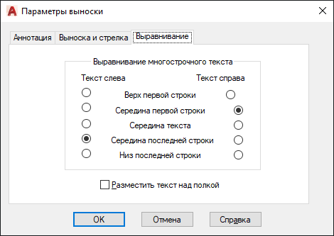 Задание точки прикрепления для выносных линий и многострочных аннотаций. Параметры доступны, только если для аннотации выбран многострочный текст.