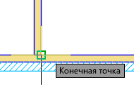 Курсор фиксируется на указанной характерной точке привязки, а маркер и подсказка показывают положение объектной привязки.