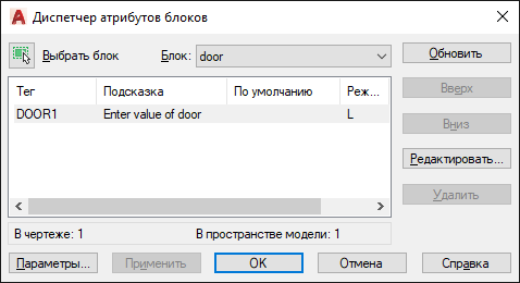 Атрибуты выбранного блока отображаются в списке атрибутов. По умолчанию в списке атрибутов отображается тег атрибута, подсказка, значение по умолчанию, режим и аннотативные свойства атрибута. Для каждого выбранного блока под списком атрибутов даны сведения о количестве вхождений блока в текущем чертеже и на текущей вкладке.