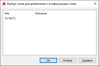 Отображает имя и описание слоев, которые не были добавлены в конфигурацию слоев. Выберите слои, которые требуется добавить, и нажмите кнопку "ОК".
