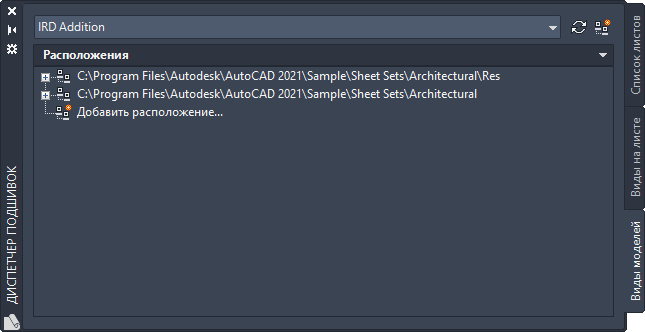 Для управления тем, какие файлы чертежей связаны с текущей подшивкой, папки из этого списка можно удалять и добавлять новые.