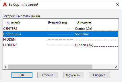 Отображается диалоговое окно "Загрузка/перезагрузка типов линий", с помощью которого производится загрузка выбранных типов линий и их добавление в список доступных.