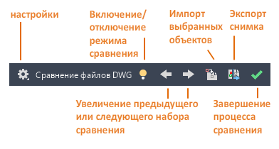 При запуске операции сравнения отображается панель инструментов сравнения файлов DWG.