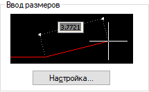 Когда ввод размеров включен для динамических подсказок, во всплывающей подсказке отображается значения расстояния и угла в ответ на запрос второй точки. Значения в размерных подсказках изменяются по мере перемещения курсора. Для перехода к значению, которое требуется изменить, нажмите клавишу TAB. Динамический ввод не доступен для команд ДУГА, КРУГ, ЭЛЛИПС, ОТРЕЗОК и ПЛИНИЯ.