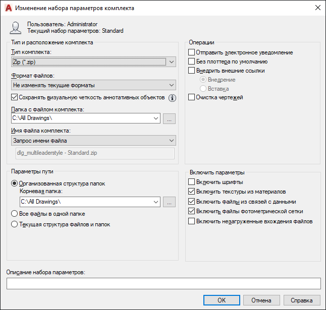 В корневую папку при формировании комплекта из подшивки также заносится файл данных подшивки (DST). (Не применяется к версии AutoCAD LT.)