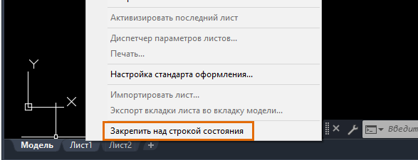 Прим.: Флажок указывает, что элемент отображается в строке состояния.
