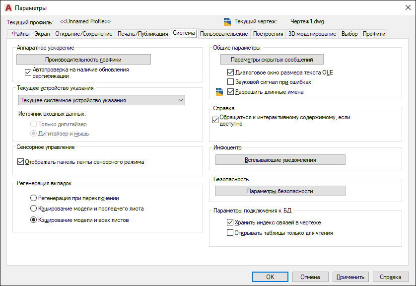 Некоторые приведенные выше параметры недоступны в AutoCAD LT.