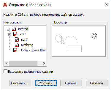 Если внешние ссылки являются вложенными, выбранная внешняя ссылка на чертеж (xref) открывается в новом окне.